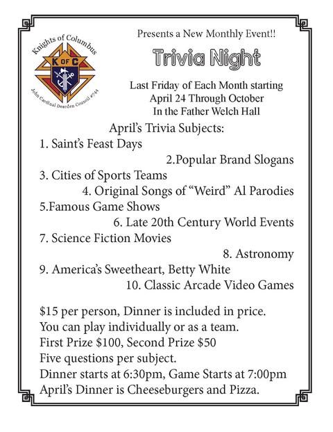 Welcome to the website of the Knights of Columbus Council 744 IN SERVICE TO ONE. IN SERVICE TO ALL. Knights Of Columbus John Cardinal Dearden Council 744